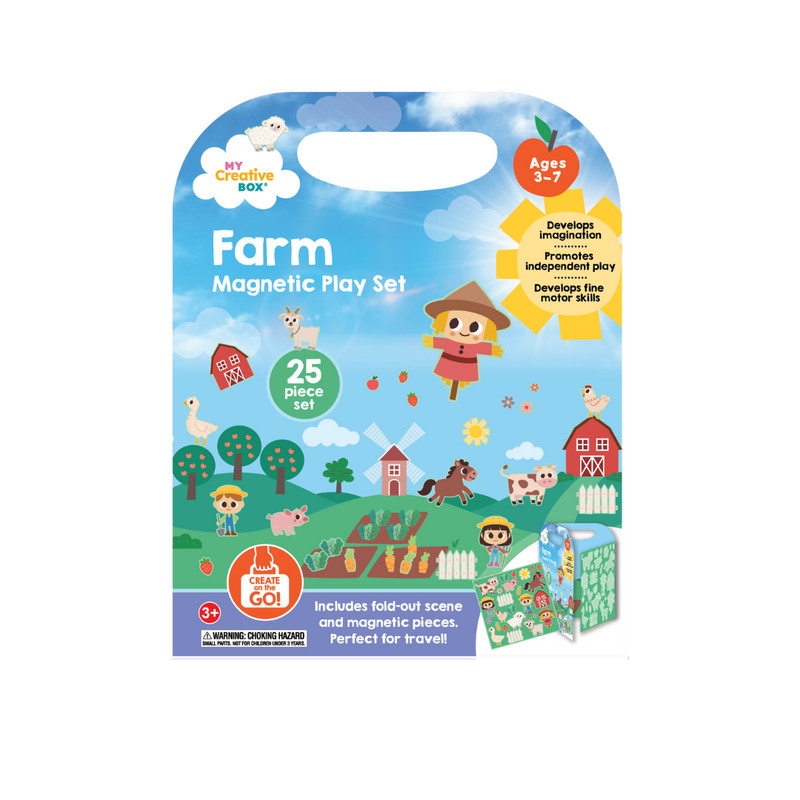 24 mágneses elemmel van tele, köztük egy kihajtható jelenettel, amelyen különféle haszonállatok, gazdák, termékek és élőhelyük látható, helyi művész illusztrációival. Ez a játékkészlet 3-7 éves korig készült, és órákig tartó fantáziadús szórakozást ígér, akár otthon, akár útközben.