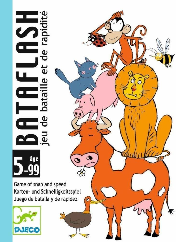 A Bataflash egy gyorsasági és megfigyelésen alapuló játék, amelyben a játékosoknak azonos állatokat kell gyorsan azonosítaniuk a kártyáikon. A játék izgalmas fordulatokat ígér, és garantáltan leköti a gyerekek figyelmét, miközben játékos formában fejleszti a memóriájukat és megfigyelőképességüket.