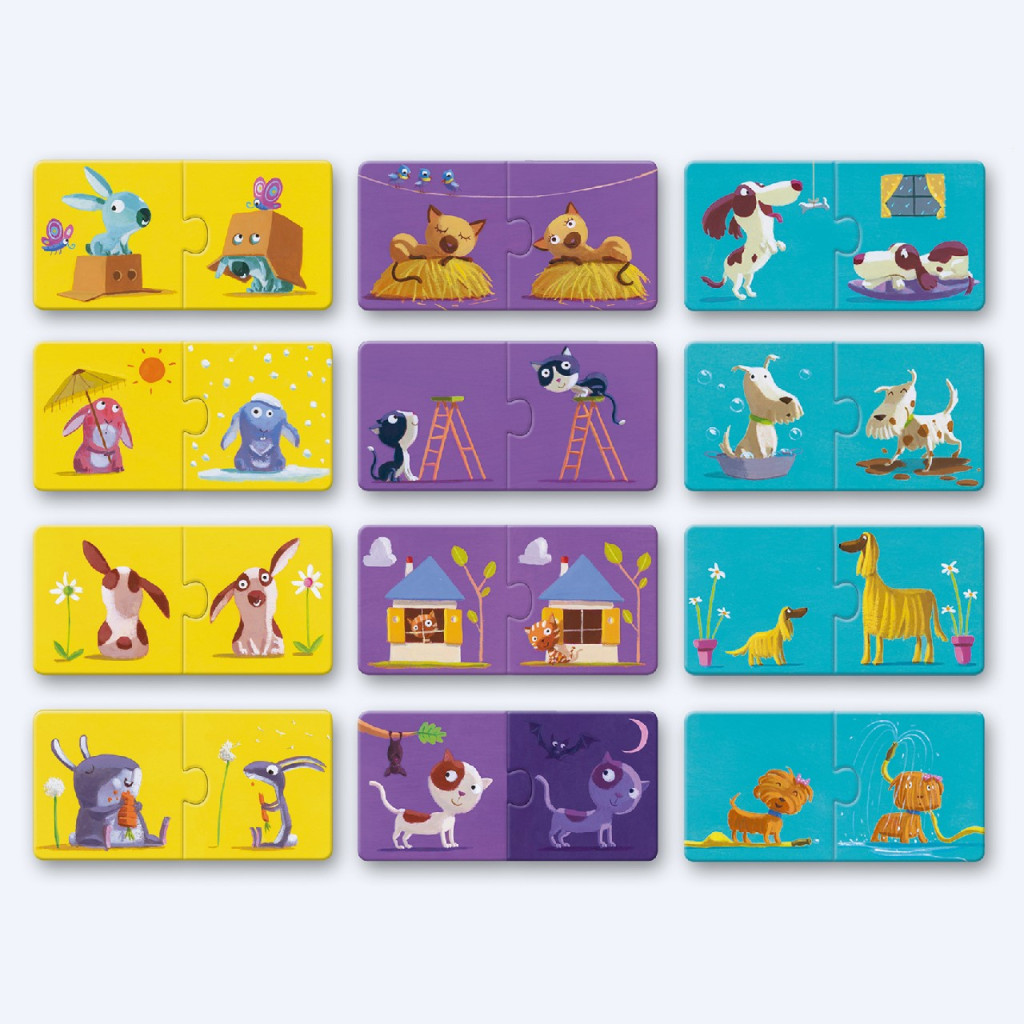 Az Opposites egy könnyen hordozható puzzle, amit bárhová magatokkal vihettek, így utazás közben vagy a családi kirándulások alkalmával is tökéletes szórakozást biztosít. A Djeco által készített játék nem csak szórakoztató, hanem egyben esztétikailag is megnyerő, így szívesen veszik kézbe a gyerekek.