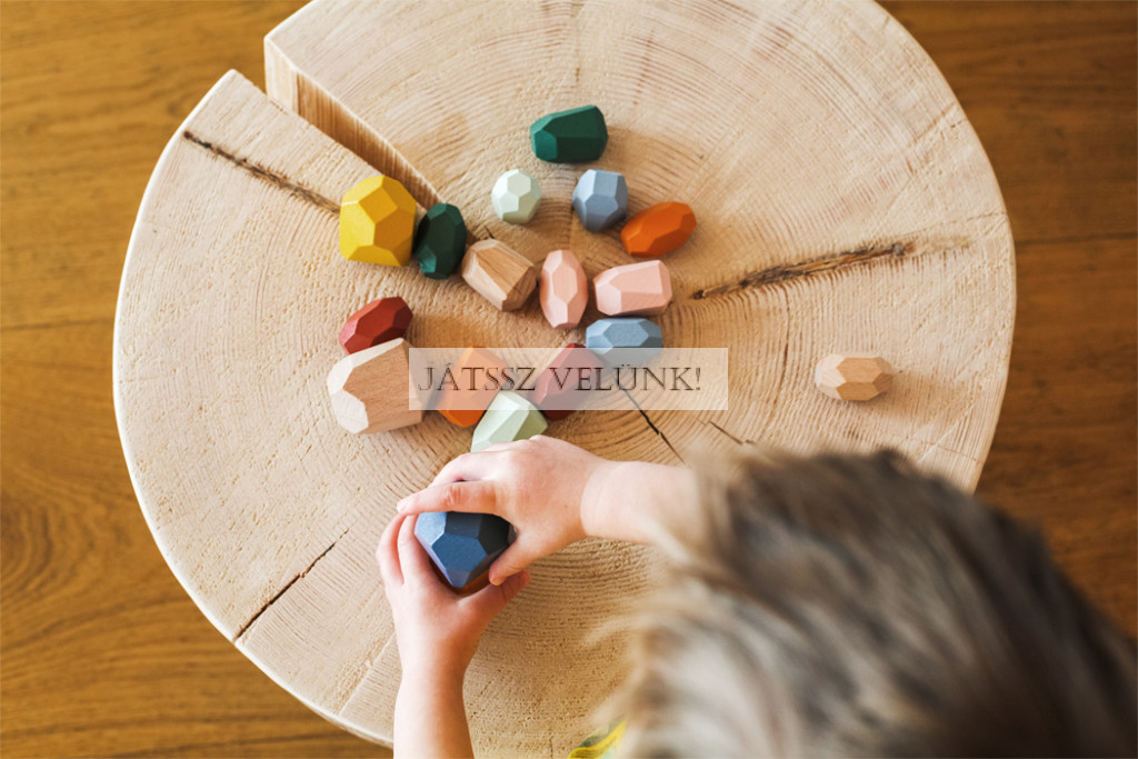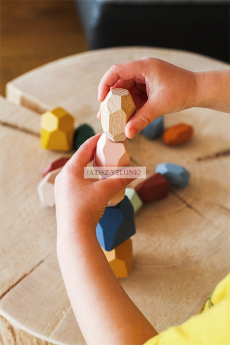 Fa Montessori egyensúlyozó kockák A egyensúly és a türelem felfedezése Fedezze fel a Montessori pedagógia varázsát ezekkel az egyedi fa egyensúlyozó kockákkal, ahol minden kocka más! A készlet 18 kézzel készített, minőségi fából készült kockát tartalmaz, különböző formákkal, élekkel és méretekkel. Ideális a finommotoros készségek, a koncentráció és a kreatív gondolkodás fejlesztésére. A gyerekek játék közben megtanulják az egyensúly, a gravitáció és a türelem elveit, miközben teljesen koncentrálnak – ami segít csökkenteni a stresszt és javítja a koncentrálóképességet. A kockák alkalmasak egymásra rakásra, válogatásra, meditációra vagy dekorációra. A modern színes kivitelnek és a kellemes tapintásnak köszönhetően ideális kiegészítője minden gyerekszobának vagy montessori játszószobának.