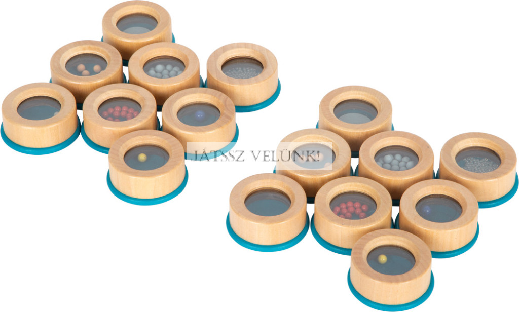 Figyelj és jegyezd meg! Ezzel az akusztikus szenzoros játékkal a "Sensory" termékcsaládból a cél a megfelelő tárgyak felismerése, megnevezése és párosítása a hangjuk figyelmes meghallgatása alapján. A 16 fadoboz olyan anyagokkal van tele, mint például fagolyók, fémgolyók, műanyag gyöngyök vagy fapénzérmék, amelyek megrázásra különböző hangokat adnak ki. A dobozok alján található plexiüveg ablakok lehetővé teszik a tartalmuk ellenőrzését és a tippelést. A játék egyedül vagy több játékossal is játszható, és különösen alkalmas gyermekek és látássérültek számára. Méretüknek és a kiálló doboztetőnek köszönhetően az ergonomikusan formázott fa játékelemek könnyen megfoghatók gyermekek és idősebbek számára. Ki hallja a különbségeket?