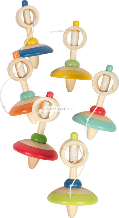Ezek a színes, felhúzható funkcióval ellátott fa pörgettyűk egyedülálló dinamikájukkal nagyszerű látványt nyújtanak! A felhúzható pörgettyű funkciója ugyanolyan egyszerű, mint amilyen lenyűgöző: a zsinór meghúzásával a pörgettyű feltekeredik és forgó mozgásba kezd. Amint elegendő feszültség keletkezik, a pörgettyűt egy sík felületre helyezik, ahol lenyűgöző forgó mozgásban kezd táncolni. A forgó pörgettyű színeinek látványa mind a gyerekeket, mind a felnőtteket elkápráztatja.
