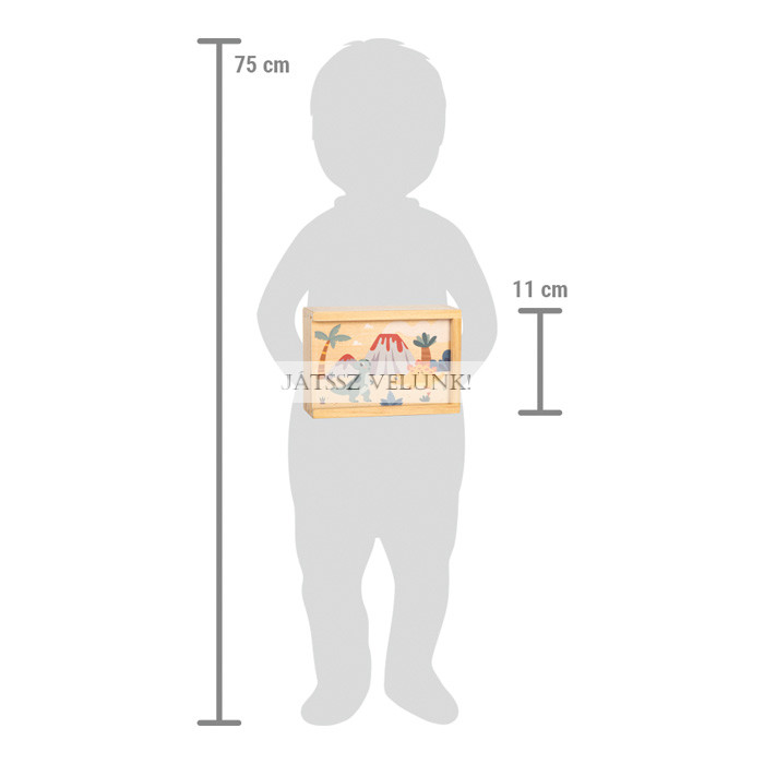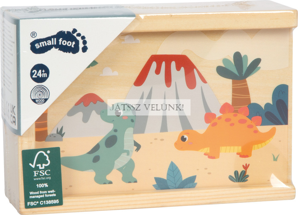 Ez a társasjáték könnyen tárolható és szállítható a mellékelt fadobozban, így a gyerekek útközben is magukkal vihetik kedvenc játékukat. Ez egy klasszikus memóriajáték kompakt formátumban, amely garantáltan tartós játékélményt nyújt minden korosztályú dínó rajongónak.