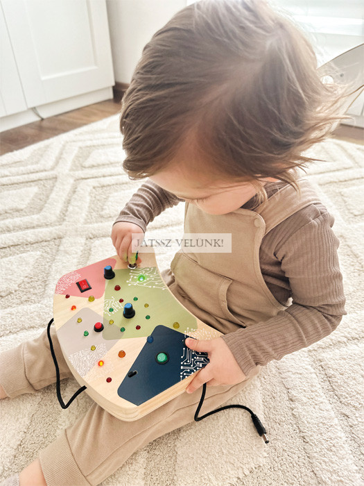• Elektronikus tanulójáték masszív fából a kíváncsiság ösztönzésére és a motoros készségek fejlesztésére.